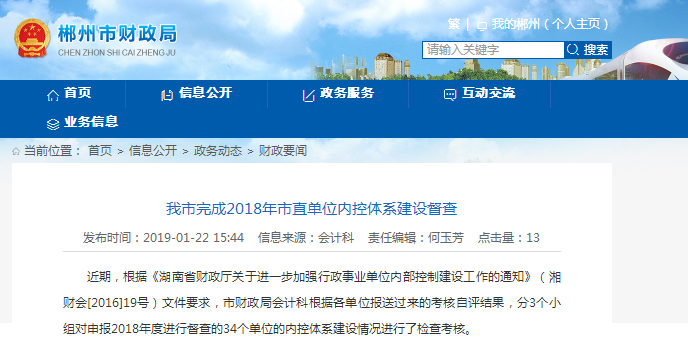 郴州市完成2018年市直單位內(nèi)控體系建設(shè)督查