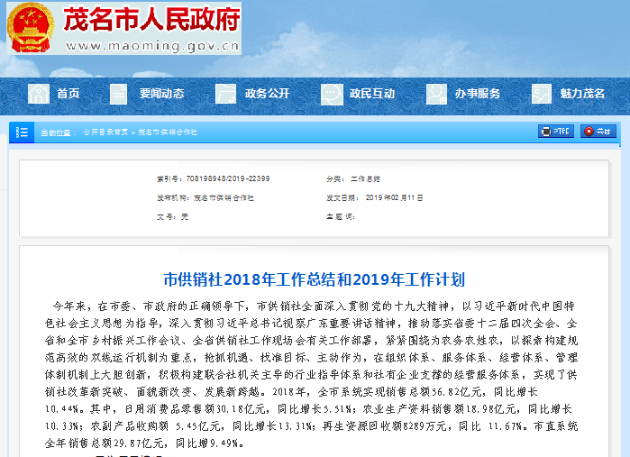 茂名市供銷社2018年工作總結(jié)和2019年工作計(jì)劃