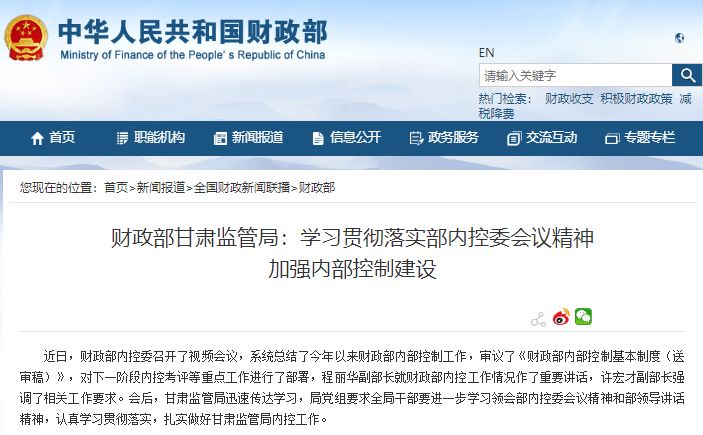 財(cái)政部甘肅監(jiān)管局:學(xué)習(xí)貫徹落實(shí)部?jī)?nèi)控委會(huì)議精神?加強(qiáng)內(nèi)部控制建設(shè)