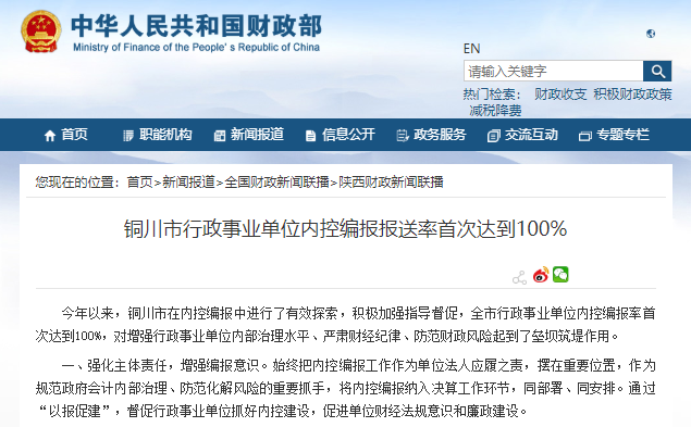 銅川市行政事業(yè)單位內(nèi)控編報報送率首次達到100%