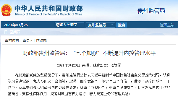 財(cái)政部貴州監(jiān)管局:“七個(gè)加強(qiáng)”不斷提升內(nèi)控管理水平