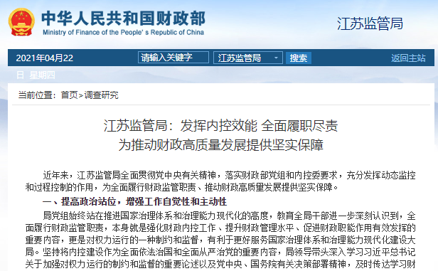 江蘇監(jiān)管局:發(fā)揮內(nèi)控效能?全面履職盡責(zé)??為推動(dòng)財(cái)政高質(zhì)量發(fā)展提供堅(jiān)實(shí)保障