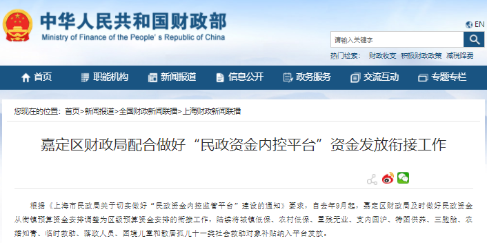 嘉定區(qū)財政局配合做好“民政資金內(nèi)控平臺”資金發(fā)放銜接工作