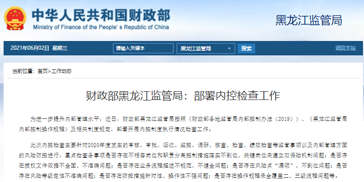 財(cái)政部黑龍江監(jiān)管局:部署內(nèi)控檢查工作