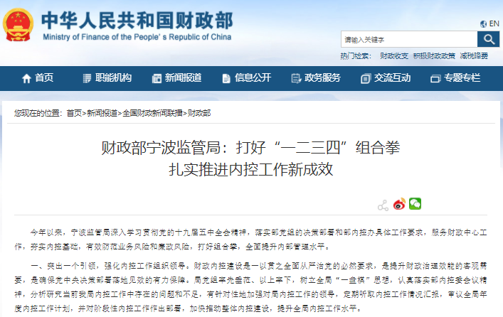 財政部寧波監(jiān)管局:打好“一二三四”組合拳?扎實推進(jìn)內(nèi)控工作新成效
