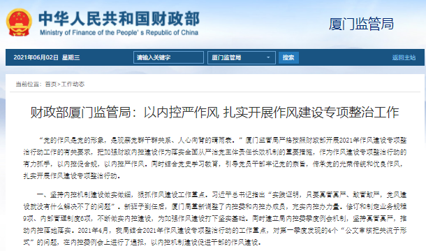 財(cái)政部廈門(mén)監(jiān)管局:以內(nèi)控嚴(yán)作風(fēng)?扎實(shí)開(kāi)展作風(fēng)建設(shè)專(zhuān)項(xiàng)整治工作
