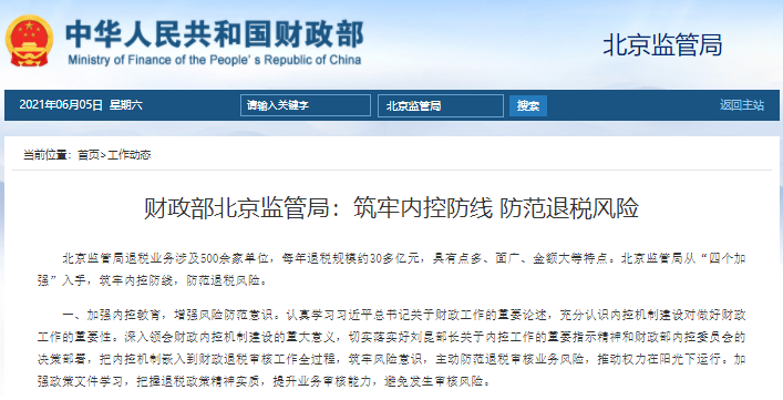 財(cái)政部北京監(jiān)管局:筑牢內(nèi)控防線?防范退稅風(fēng)險(xiǎn)