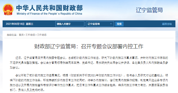 財政部遼寧監(jiān)管局:召開專題會議部署內(nèi)控工作