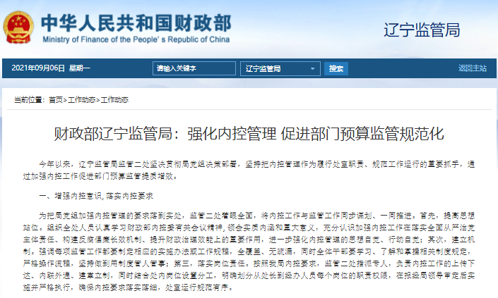 財(cái)政部遼寧監(jiān)管局:強(qiáng)化內(nèi)控管理?促進(jìn)部門預(yù)算監(jiān)管規(guī)范化