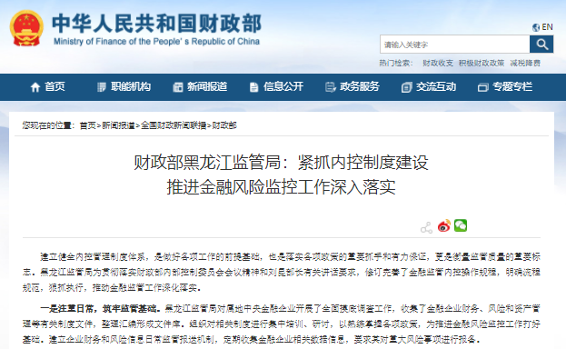 財(cái)政部黑龍江監(jiān)管局:緊抓內(nèi)控制度建設(shè)?推進(jìn)金融風(fēng)險(xiǎn)監(jiān)控工作深入落實(shí)