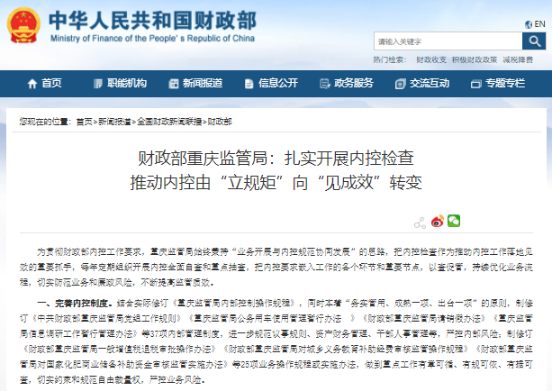 財政部重慶監(jiān)管局:扎實開展內(nèi)控檢查?推動內(nèi)控由“立規(guī)矩”向“見成效”轉(zhuǎn)變