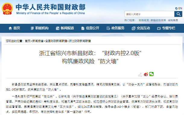 浙江省紹興市新昌財政:“財政內控2.0版”?構筑廉政風險“防火墻”