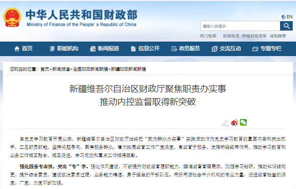 新疆維吾爾自治區(qū)財(cái)政廳聚焦職責(zé)辦實(shí)事?推動(dòng)內(nèi)控監(jiān)督取得新突破