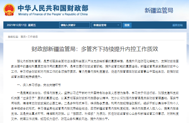 財政部新疆監(jiān)管局:多管齊下持續(xù)提升內(nèi)控工作質(zhì)效