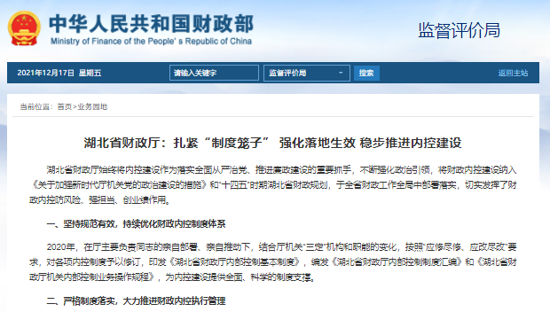 湖北省財政廳:扎緊“制度籠子”?強化落地生效?穩(wěn)步推進內(nèi)控建設