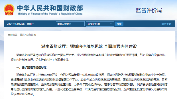 湖南省財(cái)政廳:狠抓內(nèi)控落地見效?全面加強(qiáng)內(nèi)控建設(shè)