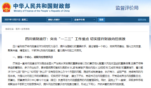 四川省財政廳:突出“一二三”工作重點?切實提升財政內控質效