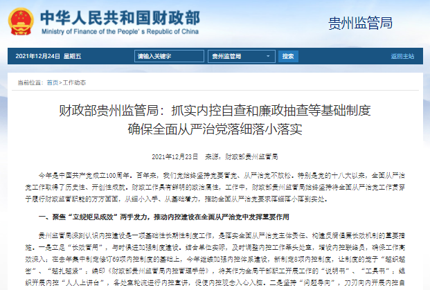 貴州監(jiān)管局始終堅(jiān)持從講政治的高度,把全面從嚴(yán)治黨工作抓在日常落在全體,持續(xù)提升監(jiān)管局黨的建設(shè)質(zhì)量,為履行好財(cái)政監(jiān)管職能提供堅(jiān)強(qiáng)保障。