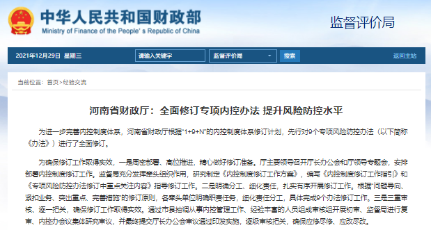 河南省財(cái)政廳:全面修訂專項(xiàng)內(nèi)控辦法?提升風(fēng)險(xiǎn)防控水平