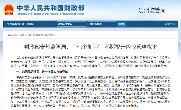 財(cái)政部貴州監(jiān)管局:“七個(gè)加強(qiáng)”?不斷提升內(nèi)控管理水平