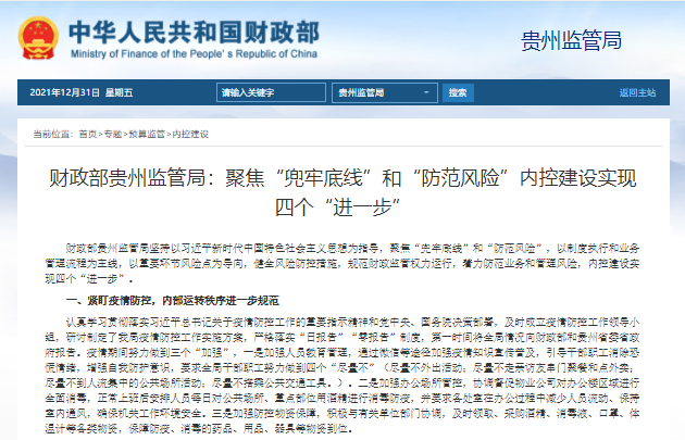 財(cái)政部貴州監(jiān)管局:聚焦“兜牢底線”和“防范風(fēng)險(xiǎn)”內(nèi)控建設(shè)實(shí)現(xiàn)四個(gè)“進(jìn)一步”
