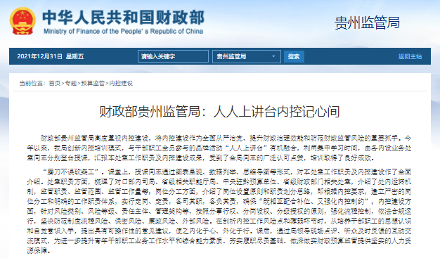 財政部貴州監(jiān)管局:人人上講臺內控記心間