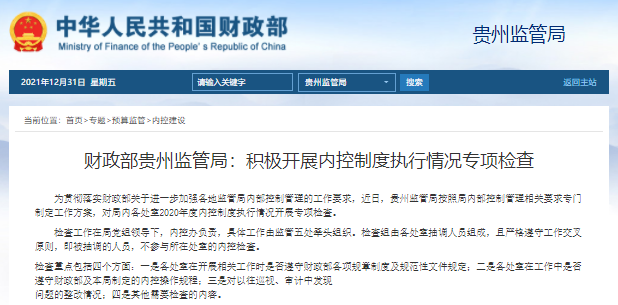 財(cái)政部貴州監(jiān)管局:積極開展內(nèi)控制度執(zhí)行情況專項(xiàng)檢查