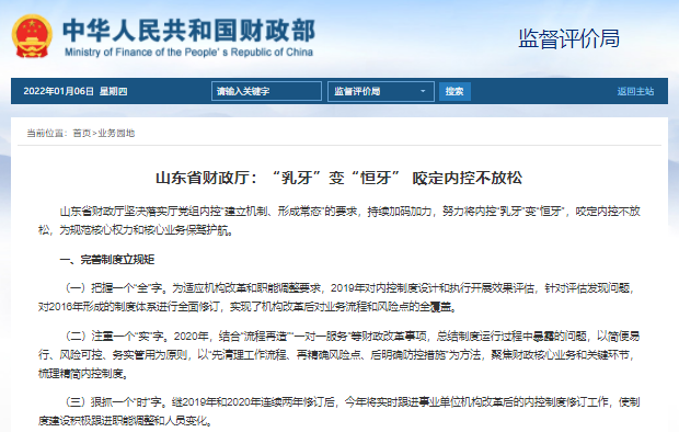 山東省財(cái)政廳:“乳牙”變“恒牙”?咬定內(nèi)控不放松