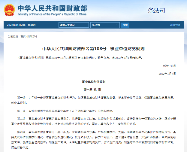 《事業(yè)單位財(cái)務(wù)規(guī)則》已經(jīng)2021年12月31日部務(wù)會(huì)議審議通過,現(xiàn)予公布,自2022年3月1日起施行。