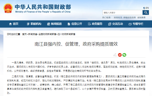南江縣強內控、促管理,政府采購提質增效