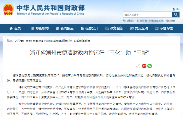 浙江省湖州市德清財(cái)政內(nèi)控運(yùn)行“三化”助“三新”