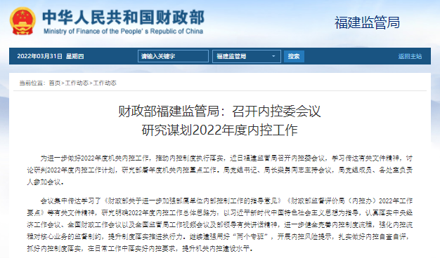 財(cái)政部福建監(jiān)管局:召開(kāi)內(nèi)控委會(huì)議?研究謀劃2022年度內(nèi)控工作