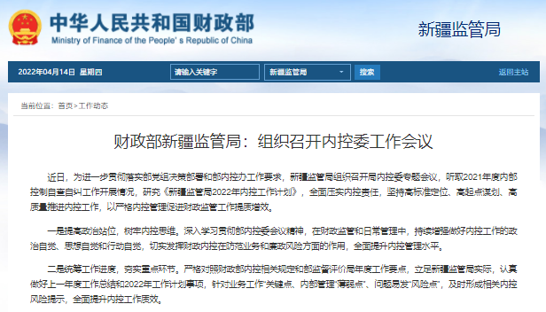 財(cái)政部新疆監(jiān)管局:組織召開內(nèi)控委工作會(huì)議