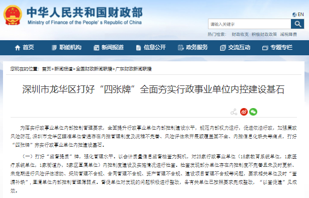 深圳市龍華區(qū)打好“四張牌”全面夯實行政事業(yè)單位內(nèi)控建設基石