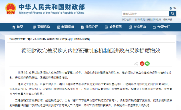 德陽財(cái)政完善采購人內(nèi)控管理制度機(jī)制促進(jìn)政府采購提質(zhì)增效