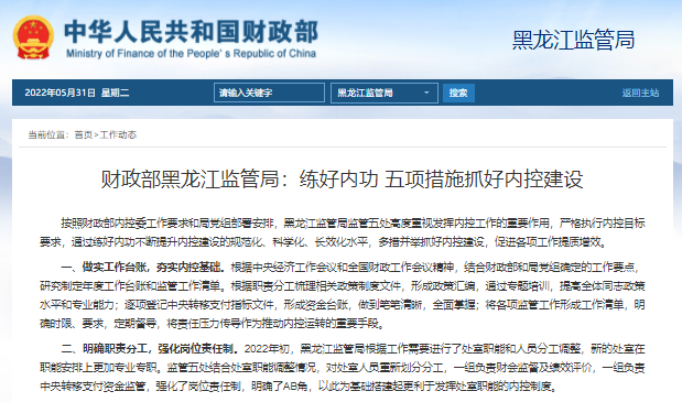 財(cái)政部黑龍江監(jiān)管局:練好內(nèi)功?五項(xiàng)措施抓好內(nèi)控建設(shè)
