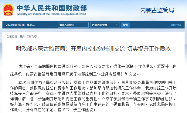 財政部內(nèi)蒙古監(jiān)管局:開展內(nèi)控業(yè)務(wù)培訓(xùn)交流?切實提升工作質(zhì)效