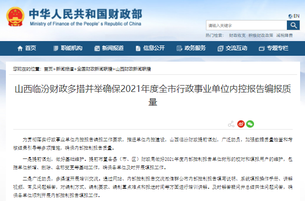 山西臨汾財政多措并舉確保2021年度全市行政事業(yè)單位內(nèi)控報告編報質(zhì)量