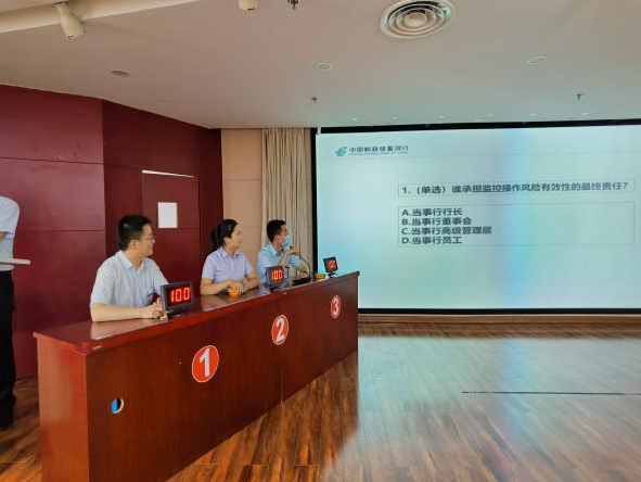 筆試過后,現(xiàn)場答題競賽活動開始。主持人首先對參加競賽的領(lǐng)導(dǎo)、評委組、裁判組等一一介紹,隨后安康市分行白西勝副行長致辭,對郵銀雙方精心組織和積極參加此次活動的全體員工表示感謝,同時(shí)表示此次比賽也是深入貫徹落實(shí)內(nèi)控合規(guī)提質(zhì)增效實(shí)施方案精神,持續(xù)深入做好“內(nèi)控合規(guī)管理建設(shè)年”活動的具體措施,更是營造全行內(nèi)控合規(guī)文化的具體表現(xiàn),希望全體人員不僅要享受比賽、賽出風(fēng)采,更要通過此次比賽提高合規(guī)從業(yè)的意識,牢固樹立合規(guī)經(jīng)營的理念。
