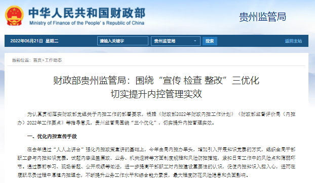 為認真貫徹落實財政部黨組關(guān)于內(nèi)控工作的部署要求,根據(jù)《財政部2022年財政內(nèi)控工作計劃》《財政部監(jiān)督評價局(內(nèi)控辦)2022年工作要點》等指導意見,貴州監(jiān)管局圍繞“三個優(yōu)化”,切實提升內(nèi)控管理實效。