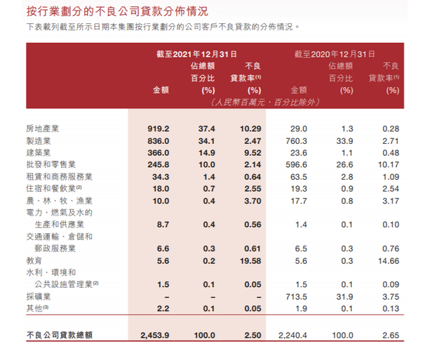 數(shù)據(jù)顯示,截至2021年末,晉商銀行的不良公司貸款主要來自房地產(chǎn)業(yè)、制造業(yè)、建筑業(yè)。