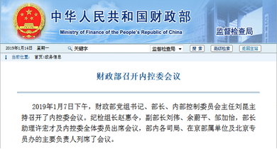 2019年1月7日下午,財(cái)政部黨組書記、部長(zhǎng)、內(nèi)部控制委員會(huì)主任劉昆主持召開了內(nèi)控委會(huì)議。紀(jì)檢組長(zhǎng)趙惠令,副部長(zhǎng)劉偉、余蔚平、鄒加怡,部長(zhǎng)助理許宏才及內(nèi)控委全體委員出席會(huì)議,部?jī)?nèi)各司局、在京部屬單位…