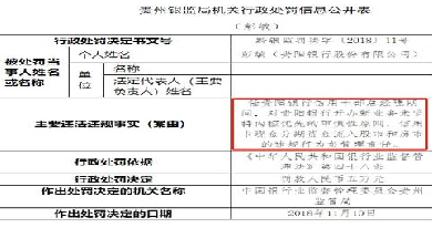 貴陽(yáng)銀行一天內(nèi)連收貴州銀監(jiān)局7張罰單,原因之一:開(kāi)辦新業(yè)務(wù)未堅(jiān)持內(nèi)控優(yōu)先的審慎性原則