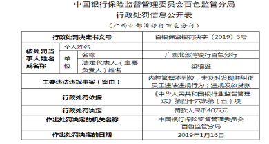 廣西北部灣銀行百色分行被罰40萬:內(nèi)控管理不到位