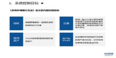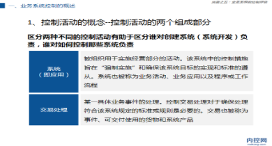 了解有關(guān)這部分內(nèi)容的知識,學習各個法案的要求及其關(guān)系有助于我們理解如何確立內(nèi)部控制的目標,以及如何開展內(nèi)部控制實施的工作。內(nèi)部控制目標針對的四個領(lǐng)域:授權(quán)、記錄、使用資產(chǎn)、資產(chǎn)問責任。主要圍繞企業(yè)的…