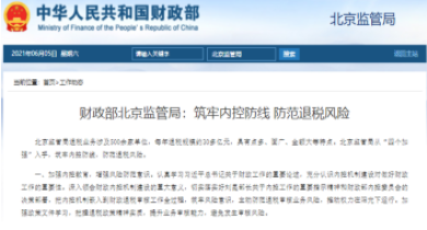 財政部北京監(jiān)管局:筑牢內控防線?防范退稅風險
