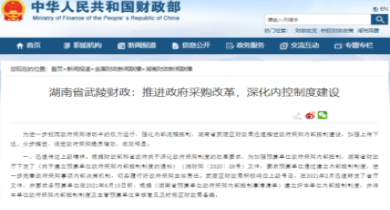 湖南省武陵財政:推進政府采購改革,深化內控制度建設