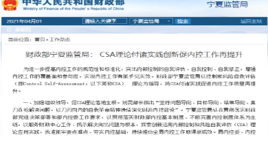 財(cái)政部寧夏監(jiān)管局:?CSA理論付諸實(shí)踐創(chuàng)新促內(nèi)控工作再提升