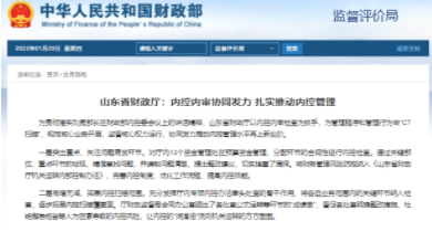 山東省財政廳:內(nèi)控內(nèi)審協(xié)同發(fā)力?扎實推動內(nèi)控管理