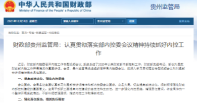 財(cái)政部貴州監(jiān)管局:三個(gè)進(jìn)一步?狠抓內(nèi)控管理工作